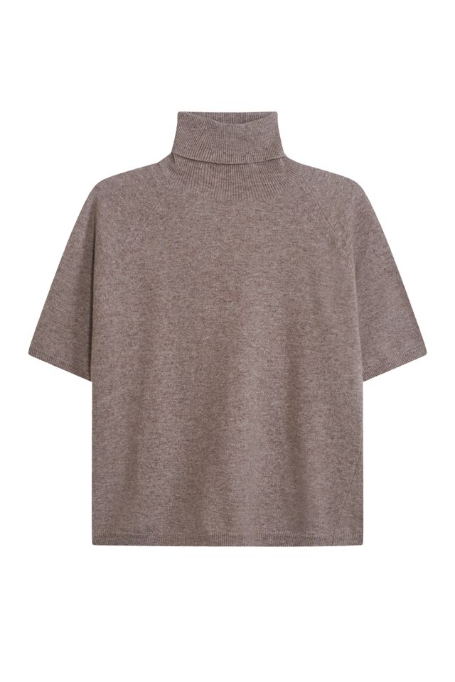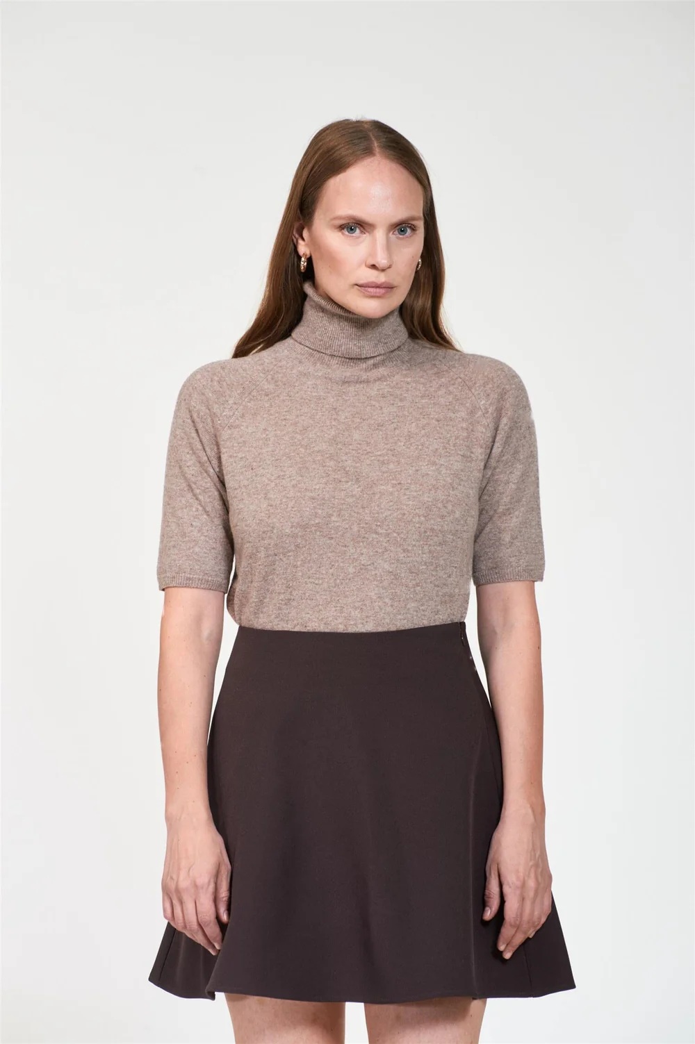 Elegant, kortermet strikkegenser med høy hals i en tørr men myk og slitesterk ullblanding.
