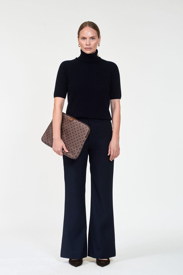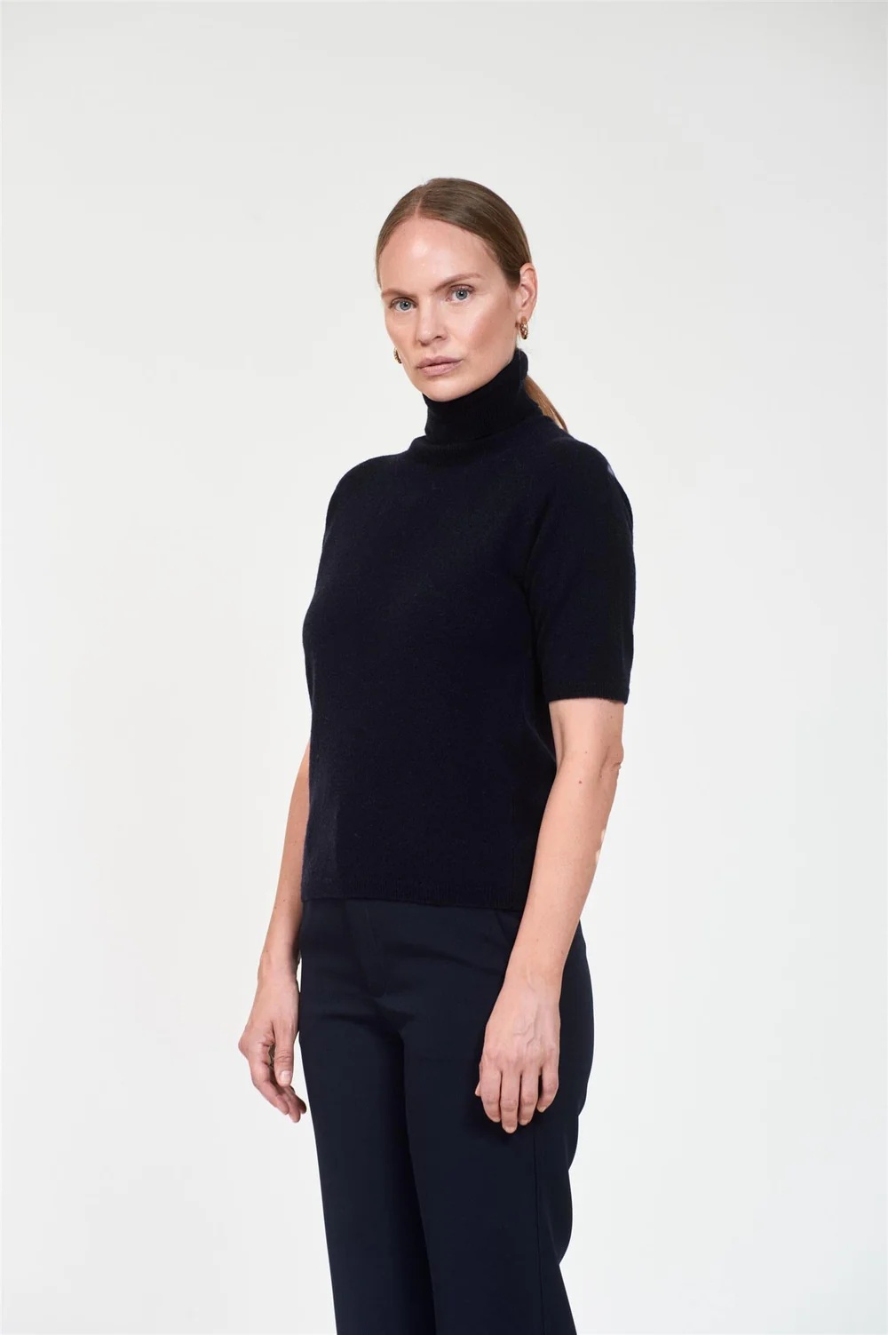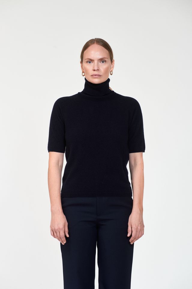 Elegant, kortermet strikkegenser med høy hals i en tørr men myk og slitesterk ullblanding.