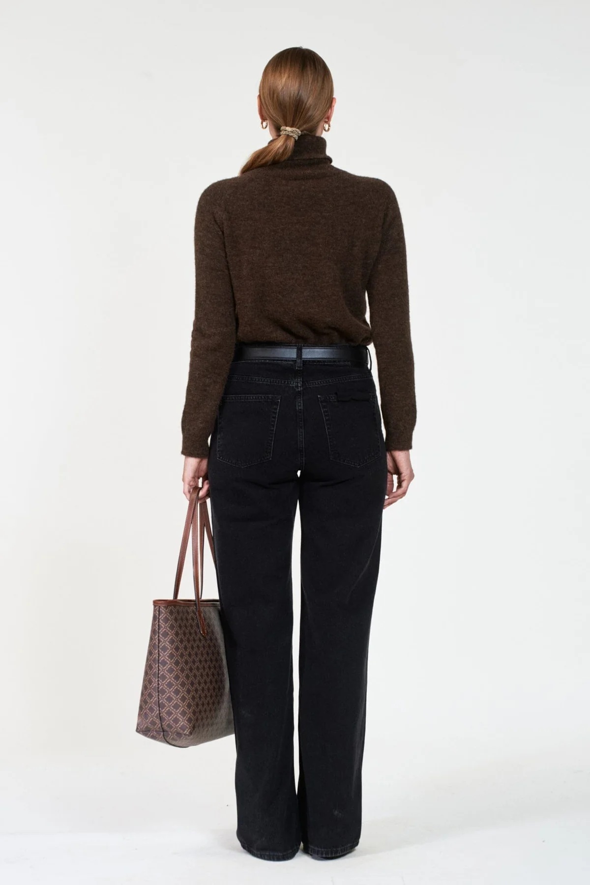 Den er strikket i en myk alpakkablanding, med raglanermer og rette linjer for en komfortabel og tidløs silhuett.