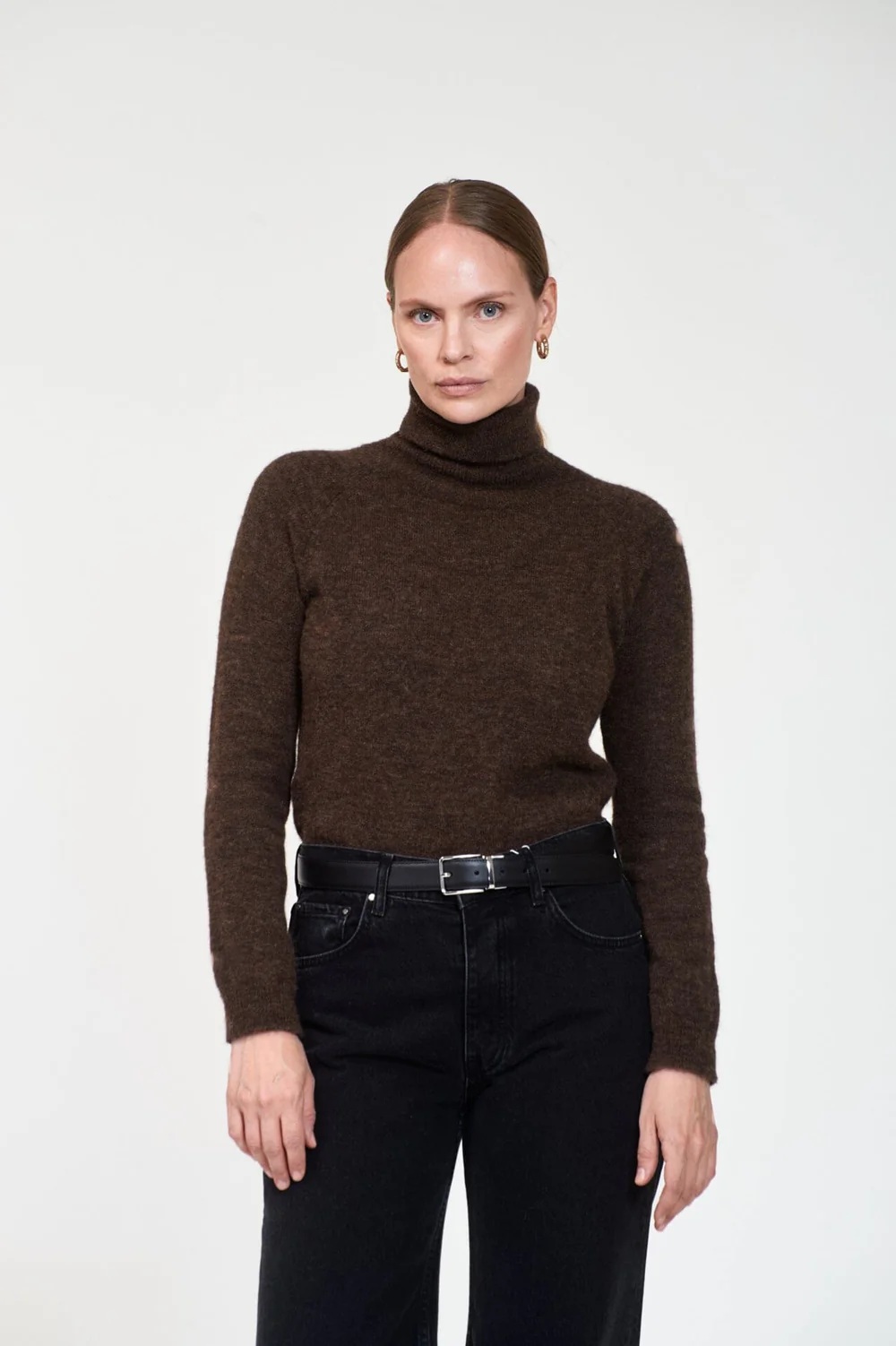 Mia er en elegant videreføring av vår klassiker Fiona, med høy, ribbestrikket hals som gir et sofistikert preg.