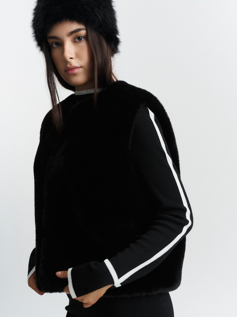 Crafted from soft faux fur, it combines warmth and style, making it both practical and elegant for the colder season.