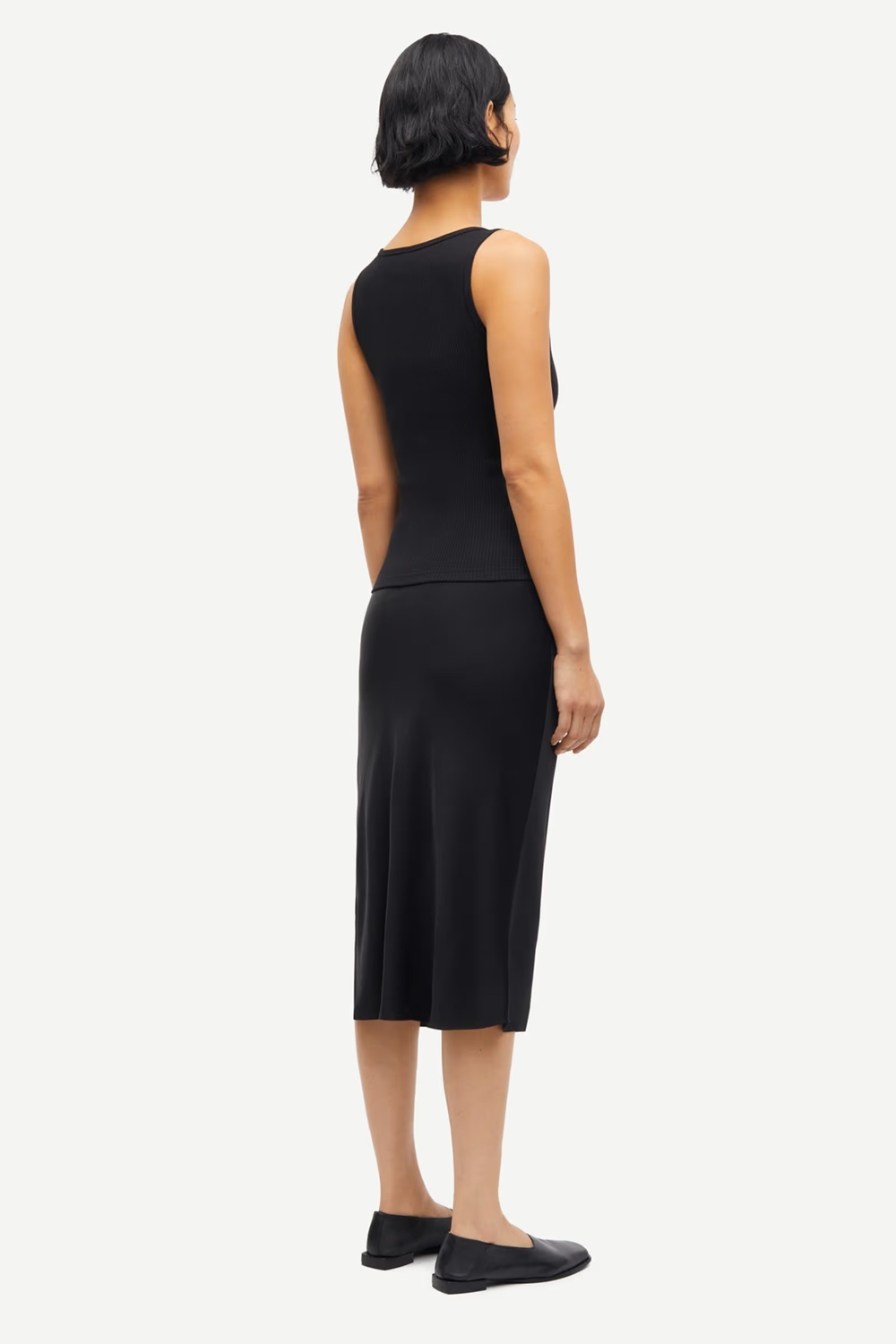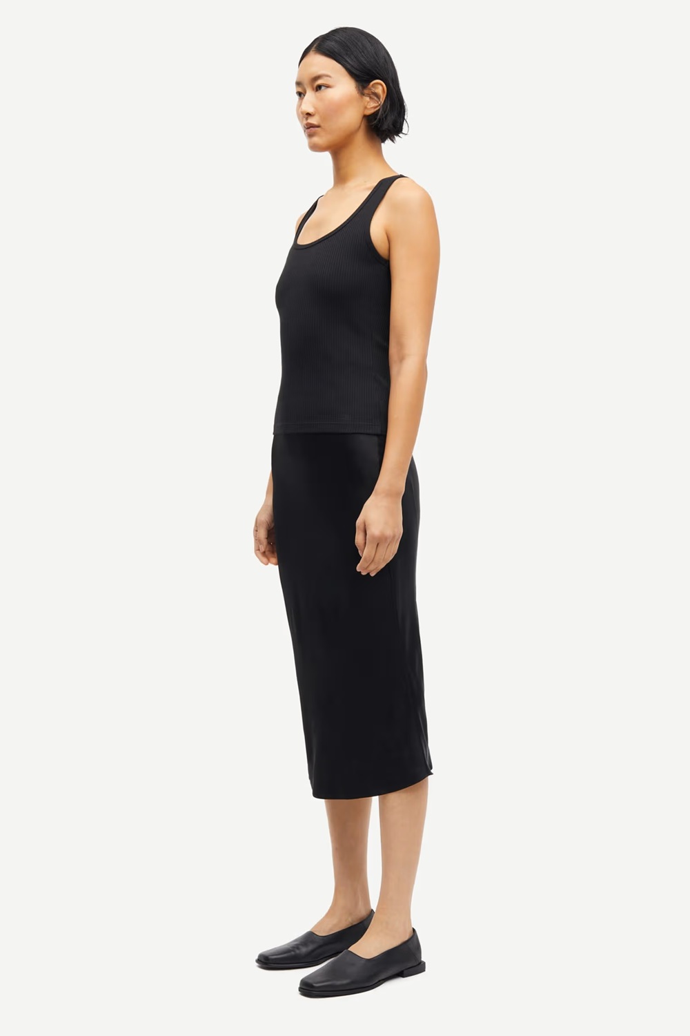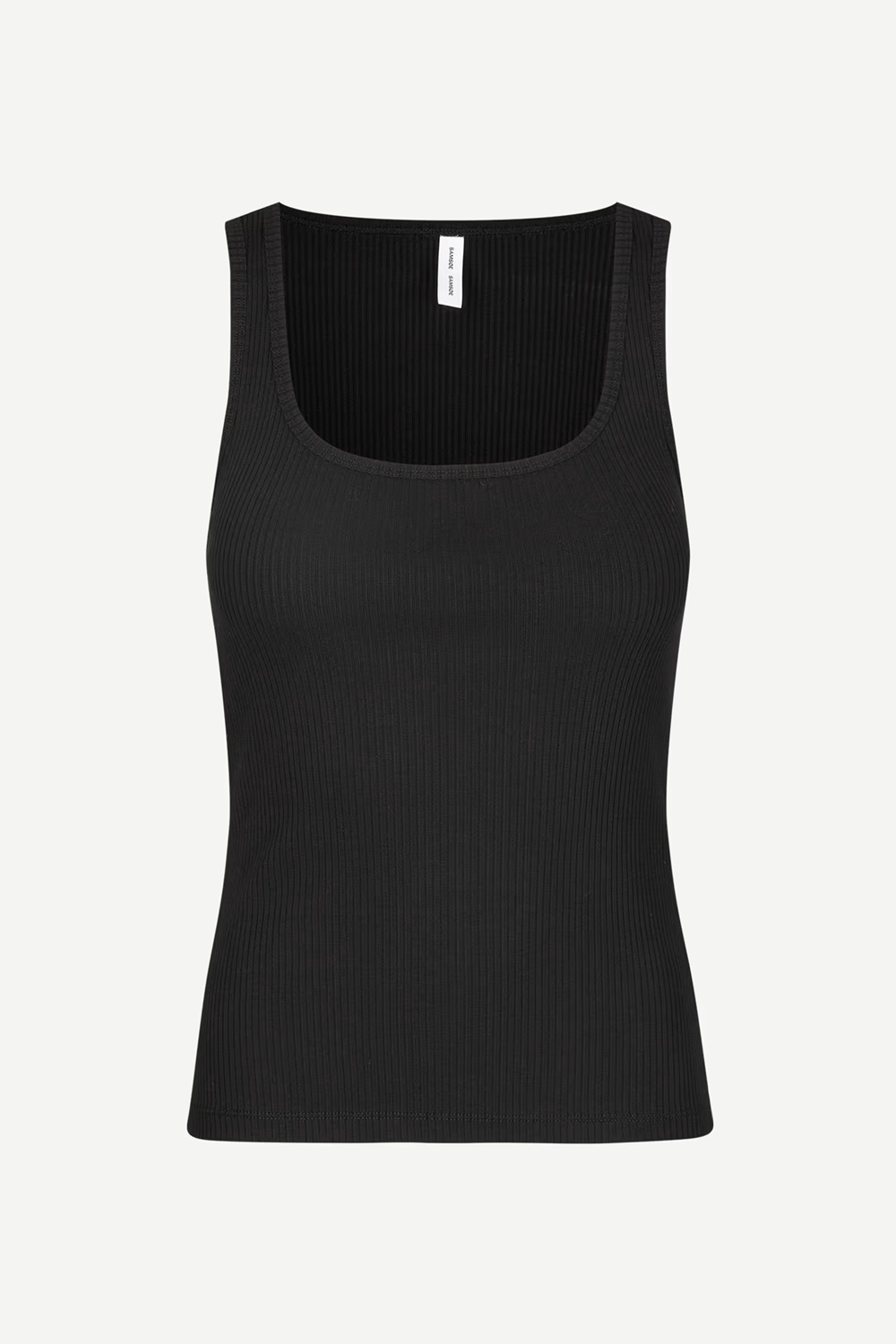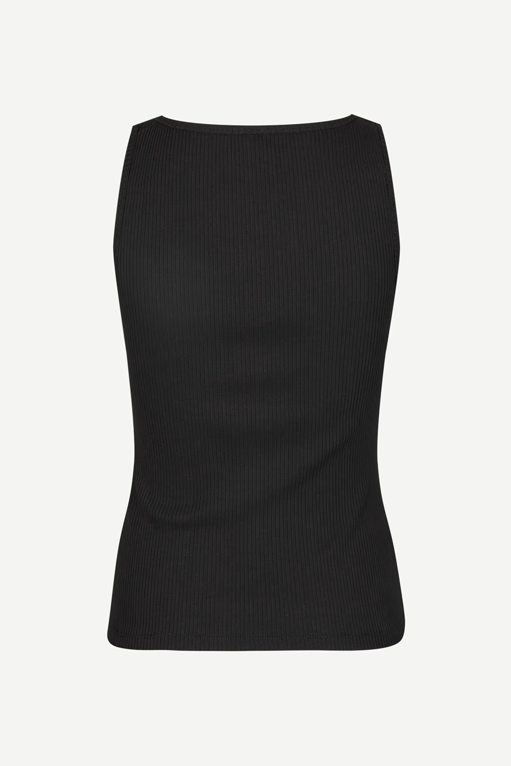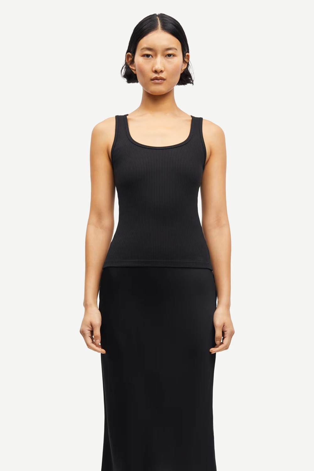 Slim fitting jersey vest top with a wide scooped front neckline and a high back neck.